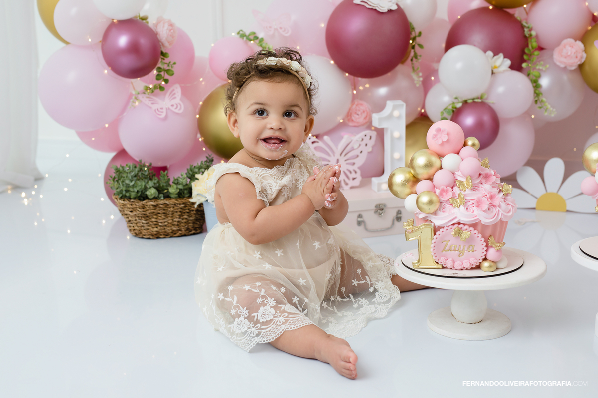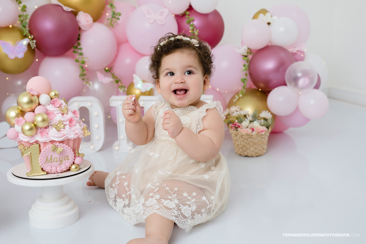 Com um cenário delicado, tons suaves e uma decoração encantadora, este ensaio smash the cake registra de forma única o aniversário de 1 ano do seu bebê. Ideal para mães que buscam ensaio de bebê, o ensaio combina decoração personalizada, figurinos leves e um ambiente seguro para o bebê brincar, explorar e se divertir.